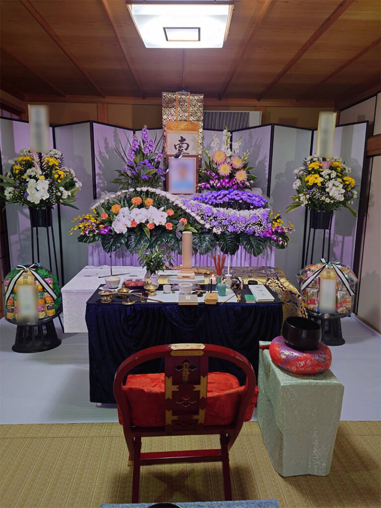 大阪生野で家族葬 白木祭壇でお見送りしました。
